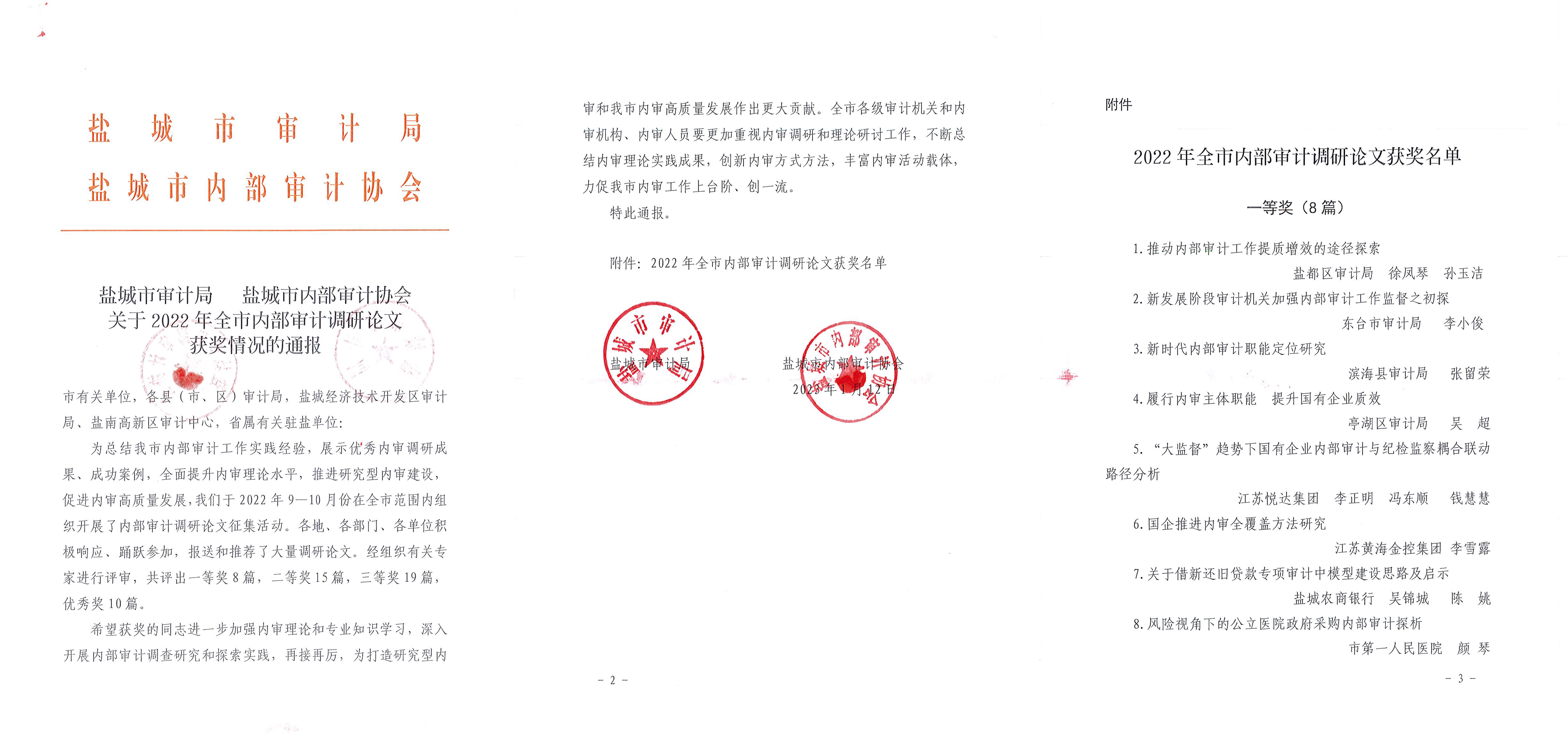 近日,鹽城市審計(jì)局、鹽城市內(nèi)部審計(jì)協(xié)會(huì)在全市范圍內(nèi)組織開展了內(nèi)部審計(jì)調(diào)研論文征集活動(dòng)。集團(tuán)審計(jì)部積極響應(yīng)該項(xiàng)活動(dòng),部門全體員工積極備稿,經(jīng)初選、終選確定三人投稿。1月12023-01-13 -