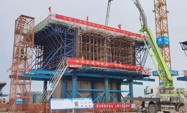 濱響大道北疏港航道大橋進(jìn)入主梁施工