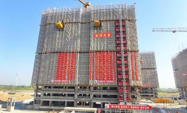 最新!港城安置區(qū)首棟樓順利封頂